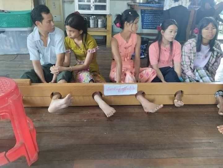 장미꽃을 머리에 꽂은 채 체포된 미얀마 젊은이들 (사진=미얀마민주주의네트워크)