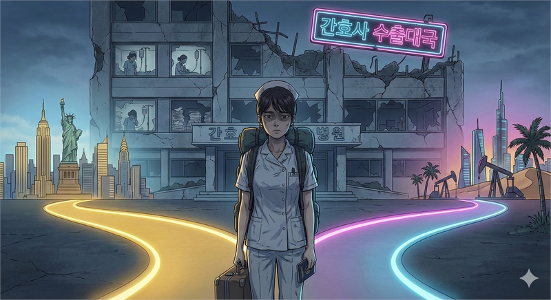1960년대 파독(派獨) 간호사들이 국가 재건을 위해 독일행 비행기에 올랐다면, 2020년대 한국 간호사들은 생존을 위해 사우디아라비아와 미국행을 택하고 있다. 최근 한국 간호사들의 해외 진출이 폭발적으로 증가하면서 '간호사 수출대국'이라는 화려한 수사 이면에 감춰진 국내 의료 현장의 구조적 모순이 수면 위로 떠오르고