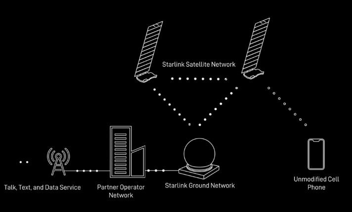 스타링크 위성은 지구를 공전하는 셀 타워와 같은 역할을 하며, 이들은 휴대폰과 직접 통신할 수 있는 기술을 갖추고 있다. 이 서비스는 기존 LTE 폰이 하늘을 볼 수 있는 곳이라면 어디에서나 서비스를 받을 수 있으며, 하드웨어, 펌웨어, 특수 앱 등의 변경 없이 텍스트, 음성, 데이터에 쉽게 접근할 수 있다.