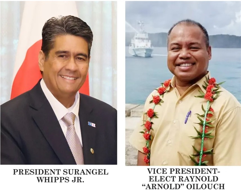 재임에 성공한 수란겔 휩스 주니어 팔라우 대통령과 오일루치 부통령 (사진=ISLAND TIMES)