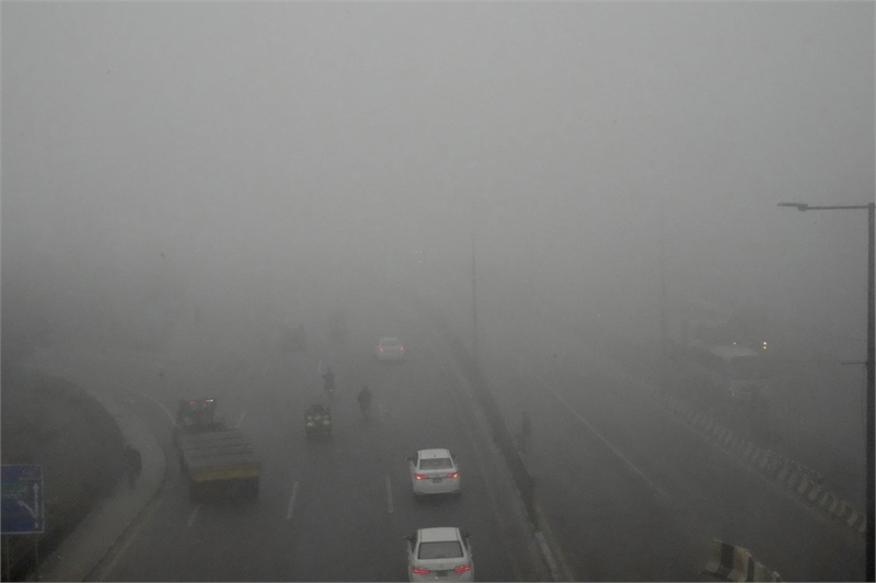 짙은 스모그로 파키스탄의 도로위를 차들이 천천히 서행하고 있다. (사진=AP)
