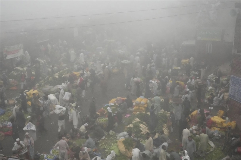 스모그로 가득한 파키스탄의 한 시장 (사진=AP)