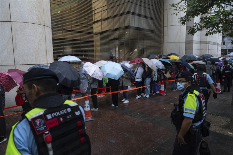 '홍콩 민주 인사 징역 선고' 법원 입장을 위해 기다리는 시민들 (사진=AP)