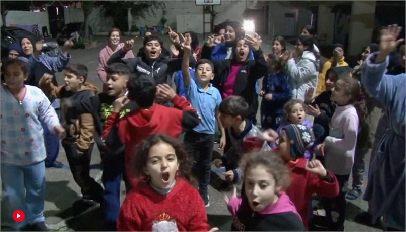 휴전 소식이 전해지자 피난처에 있던 레바논 시민들이 기뻐하고 있다. (사진=AP)