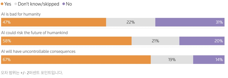 #AI #인공지능 #일자리대체 #여론조사 #로이터입소스 #실업우려 #정치적혼란 #군사적활용 #전력소모 #사회적고립