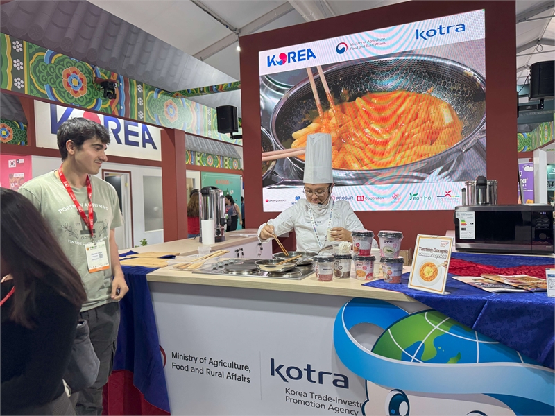 이번 한국관에는 삼진글로벌넷, 대상, 영풍 등 현지 참가 9개사와 온라인 참가 34개사를 포함해 총 43개 우리 식품기업이 K-푸드 제품을 홍보했다. 현장에 참가한 9개사는 시식·홍보회를 통해 떡볶이, 김치, 라면, 과자류, 소스류, 음료 등 주력 제품을 현지 소비자에게 선보였다.