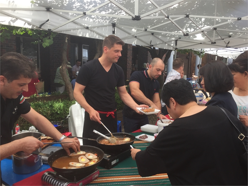 중앙아시아와 슬라브민족 국가들의 대표적인 요리인 샤슬릭, 즉 쇠꼬챙이에 고기를 꿰어 구운 요리를 굽는 냄새와 연기가 성당 마당에 퍼지면서 행사는 활기를 띠기 시작했고 방문객들과 신자들은 함께 어울리며 세계 각국의 맛을 경험하는 기회를 가졌다.