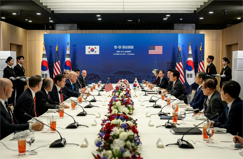 29일 아시아태평양경제협력체(APEC) 정상회의를 계기로 경주에서 열린 한미 정상회담에서 이재명 대한민국 대통령과 도널드 트럼프 미국 대통령이 한미 동맹의 경제·안보 지형을 근본적으로 재편하는 역사적 합의를 도출했다.