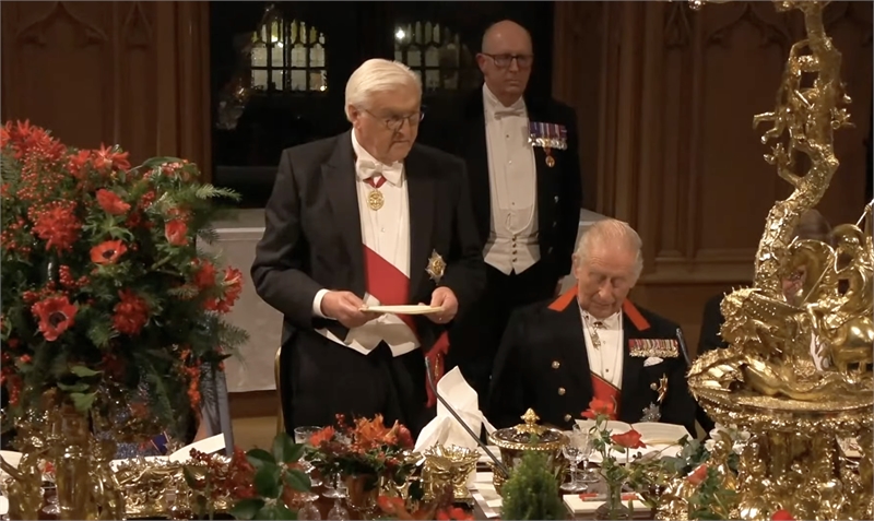 찰스 3세(King Charles III) 영국 국왕이 3일(현지시간) 윈저성(Windsor Castle)에서 열린 국빈 만찬에서 러시아를 명시적으로 "침략국(aggressor)"으로 지칭하며 영국과 독일이 함께 우크라이나를 지지하고 러시아의 추가 침략 위협에 맞서 유럽을 강화할 것이라고 선언했다.