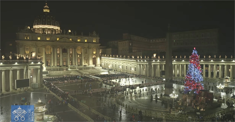 성탄 전날 비가 내리는 성베드로 대성전 앞 광장/교황청 공식 영상 캡춰